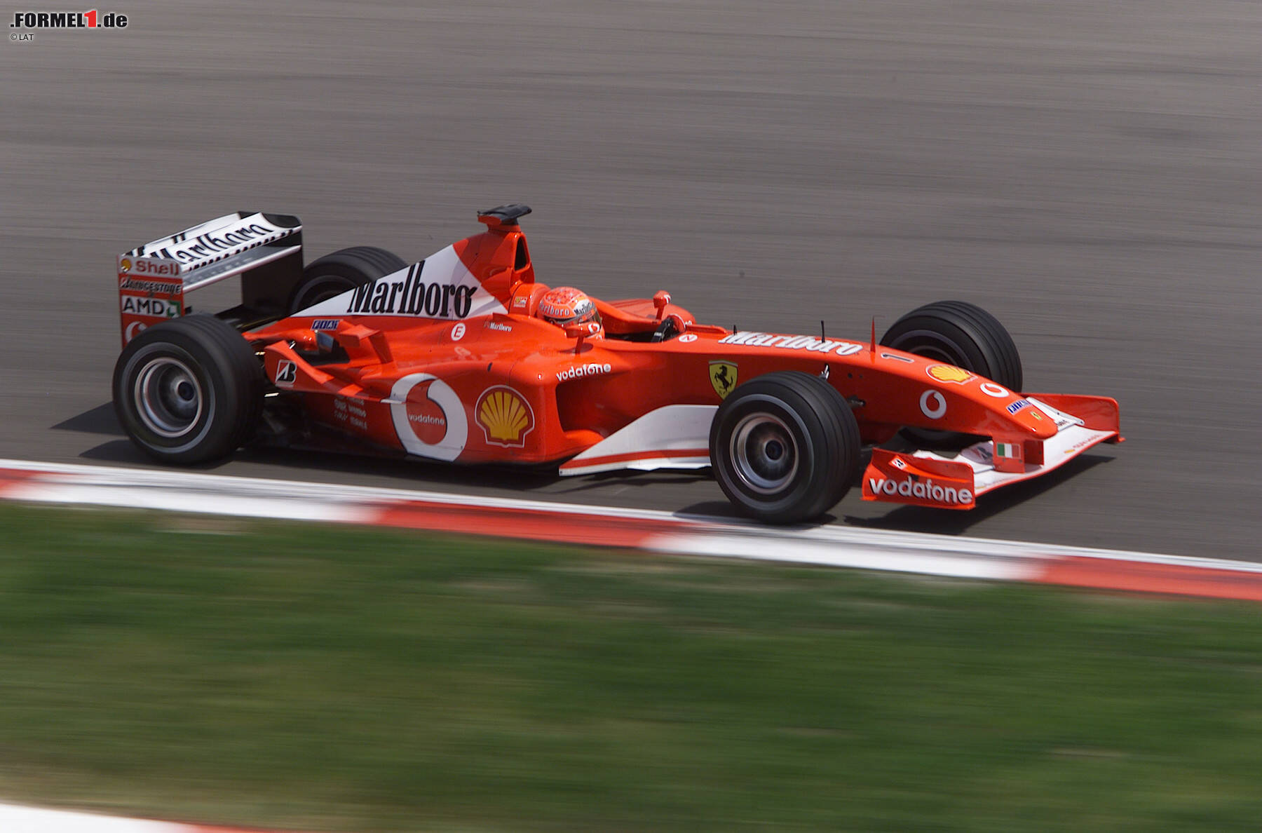 Ferrari F2002: Das neue Auto ist anschließend noch einmal ein Sprung nach vorne. Gegen den F2002, der auch zu Beginn der Saison 2003 noch viermal an den Start geschickt wird, ist 2002 kein Kraut gewachsen. Dieses Mal gewinnt "Schumi" den Titel bereits sechs Rennen vor Saisonende. Bilanz: 19 Rennen, 11 Siege, 8 Pole-Positions