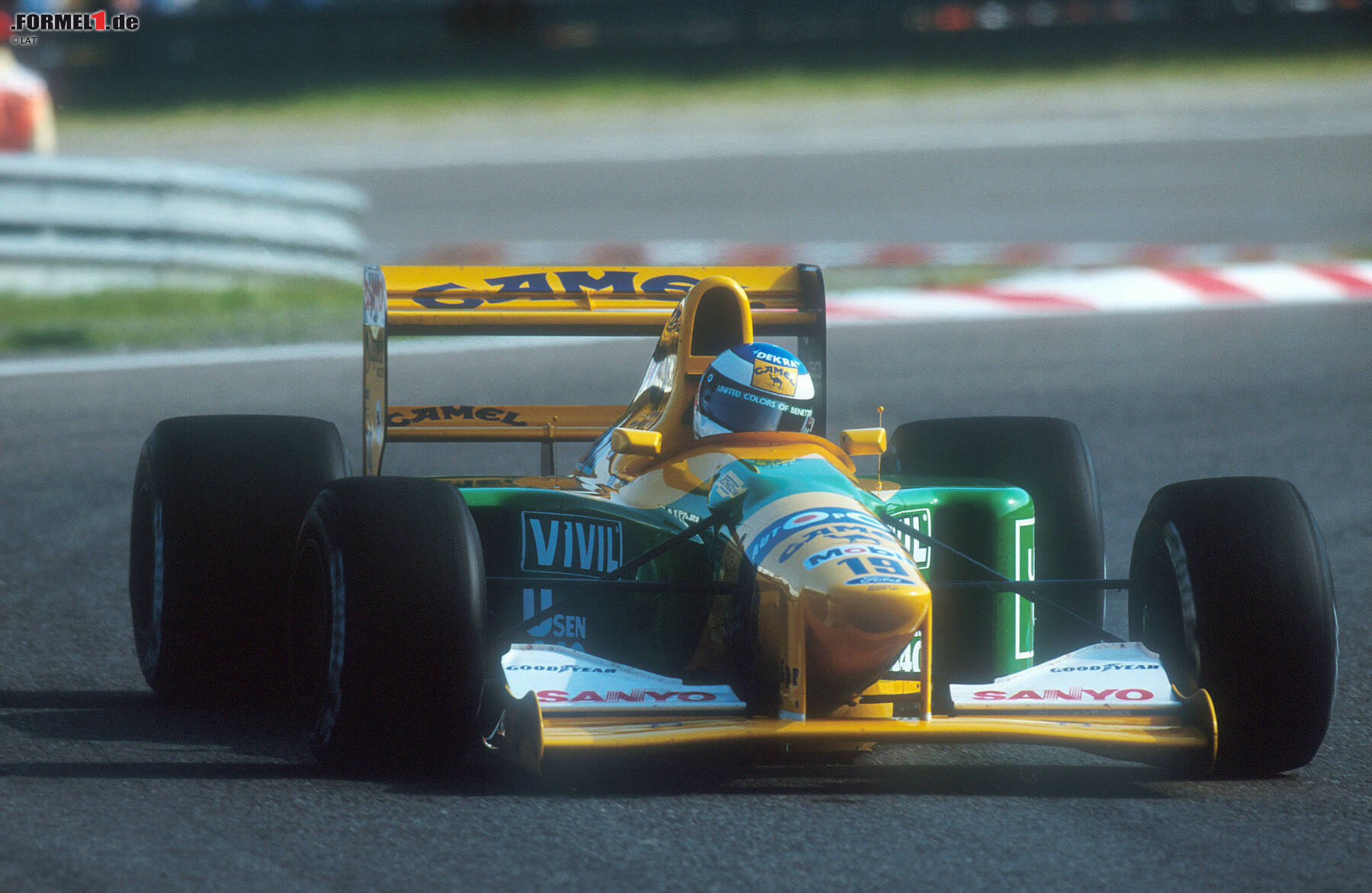 Benetton B192: Mit etwas Verspätung kommt das neue Auto für die Saison 1992. Der Benetton B192 geht in diesem Jahr als das Auto in die Geschichte ein, mit dem "Schumi" seinen ersten Grand-Prix-Sieg feiert. Der Deutsche triumphiert in Spa, wo er fast genau ein Jahr zuvor sein Debüt gab. Bilanz: 13 Rennen, 1 Sieg, 0 Pole-Positions