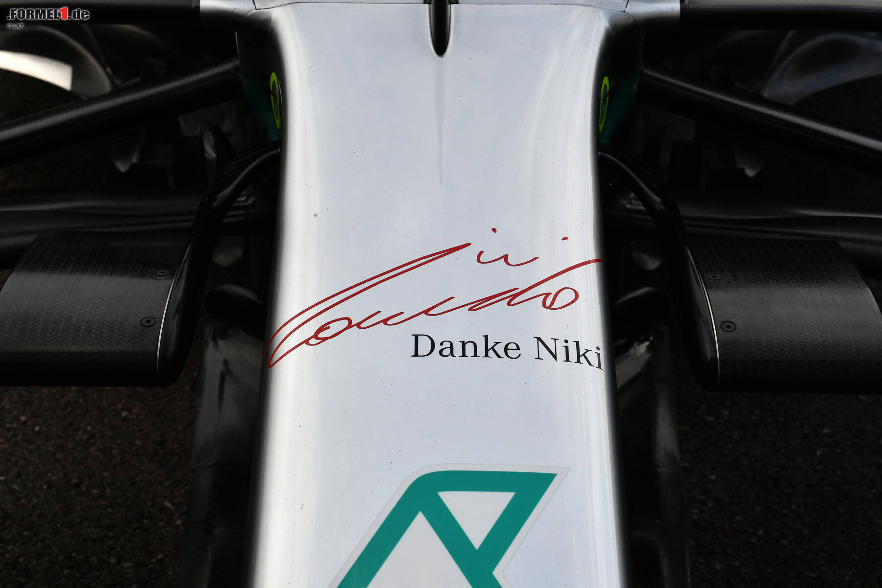 Die anderen Tribut-Aktionen des Mercedes-Teams werden hingegen nur in Monaco stattfinden. Zum Beispiel das rot eingefärbte Halo mit Schriftzug "Niki, wir vermissen dich", die Lauda-Unterschrift auf der Nase, die schwarzen Armbinden oder die rote Lauda-Kappe an der Wand mit den Headsets für den Boxenfunk.