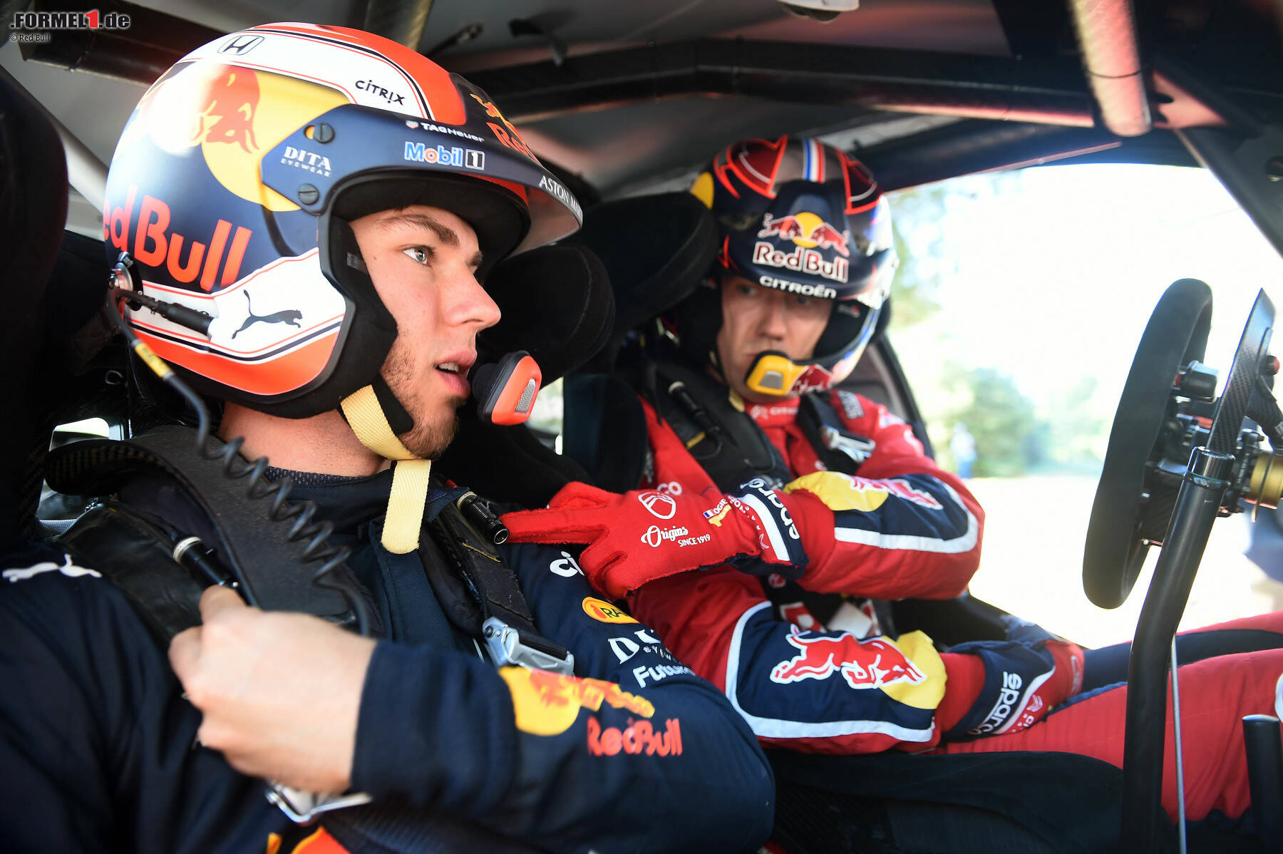 Red-Bull-Pilot Pierre Gasly durfte im Vorfeld seines Heimrennens in Frankreich Rallye-Luft schnuppern und Beifahrer von Weltmeister Sebastien Ogier spielen