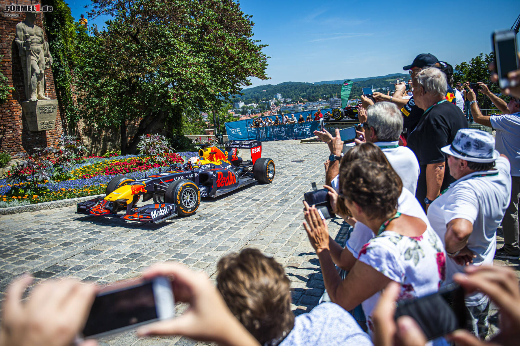 Highlight des Events war Max Verstappens Fahrt mit einem RB8 aus der Saison 2012 vom Karmeliterplatz auf den "Gipfel" des Schloßbergs. Der V8-Sauger sorgte für ohrenbetäubenden Lärm. Oben angekommen, fuhr Verstappen direkt in die Event-Location Kasematten ein, wo er von hunderten Fans empfangen wurde. Ein spektakulärer Auftritt!
