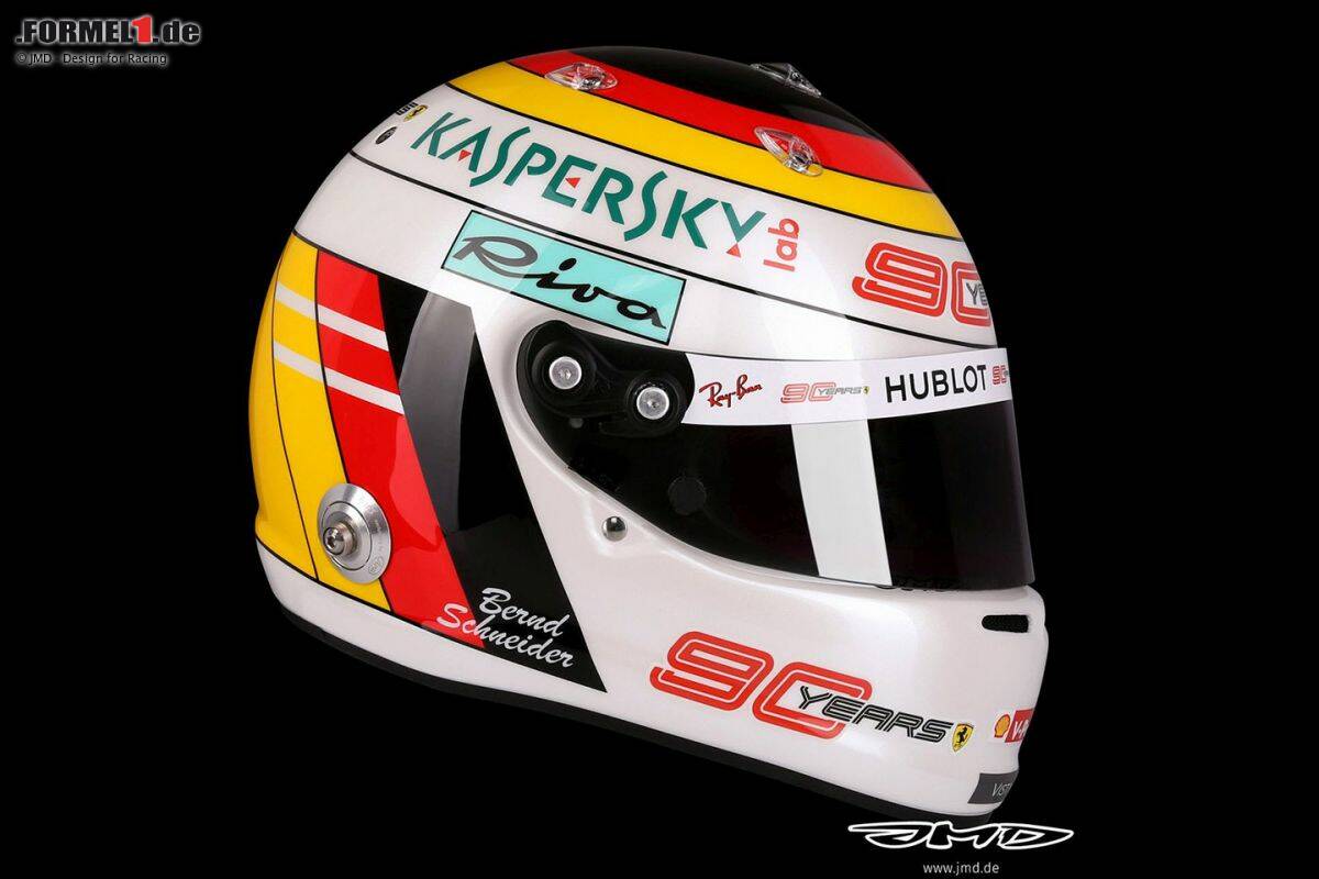 Sebastian Vettel fährt in Hockenheim 2019 mit Helmdesign in Anlehnung an Bernd Schneider. "Er ist 55 geworden. Ich fahre mit der 5. Da dachte ich, das ist ein guter Zeitpunkt", erklärt Vettel.