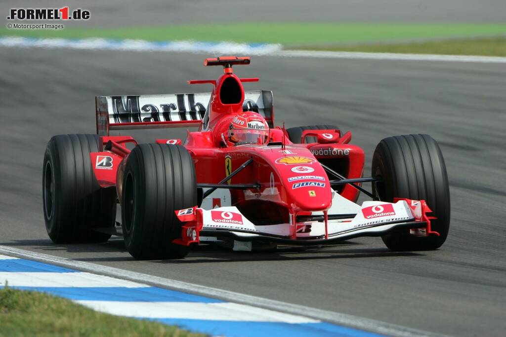 ... am besten ist immer noch der Direktvergleich: Hier ist der Ferrari F2004 von und mit Michael Schumacher beim Deutschland-Grand-Prix 2004 in Hockenheim zu sehen.