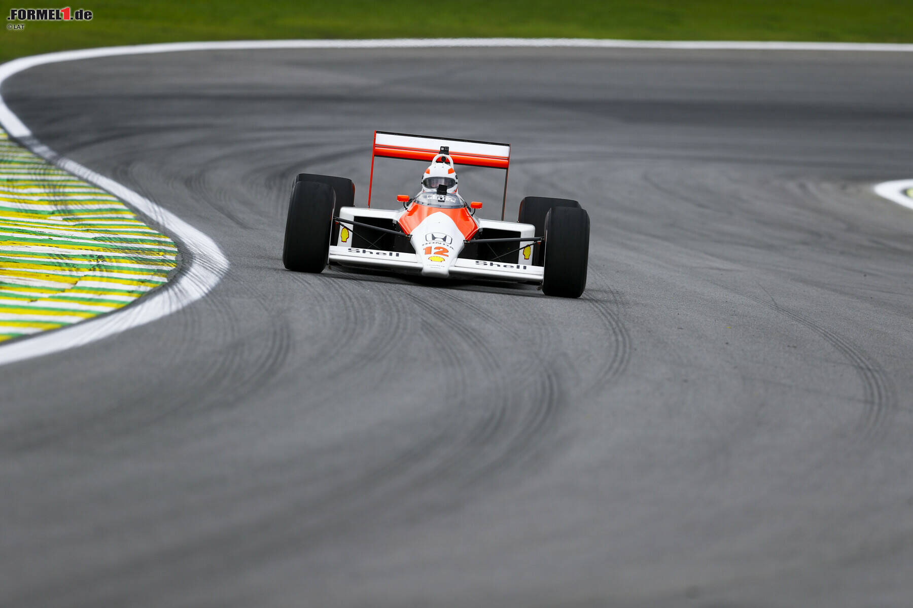 Einen Tag nach seinem Besuch traf sich Vettel - das Armband sichtbar tragend - mit Bruno Senna und Martin Brundle für Dreharbeiten mit dem McLaren MP4/4. Der Neffe von Ayrton Senna hat erst am vergangenen Wochenende das Rennen zur Langstrecken-Weltmeisterschaft (WEC) in Schanghai gewonnen.