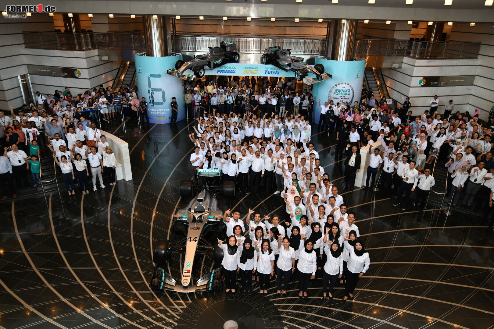 In der Firmenzentrale von Hauptsponsor und Technikpartner Petronas in Malaysia haben Lewis Hamilton und Valtteri Bottas die jüngsten Mercedes-Erfolge gefeiert