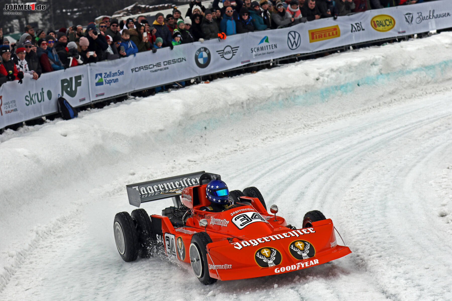 Möglich gemacht hatte die besondere Fahrt eines historischen Formel-1-Boliden auf Eis das Jägermeister Racing Team rund um Eckhard Schimpf, das neben dem March 741 - im übrigen das Chassis, welches Stuck 1974 beim Grand Prix von Monaco gefahren war - noch drei Porsche-Rennfahrzeuge mit der charakteristischen orangefarbenen Lackierung nach Zell am See gebracht hatte.