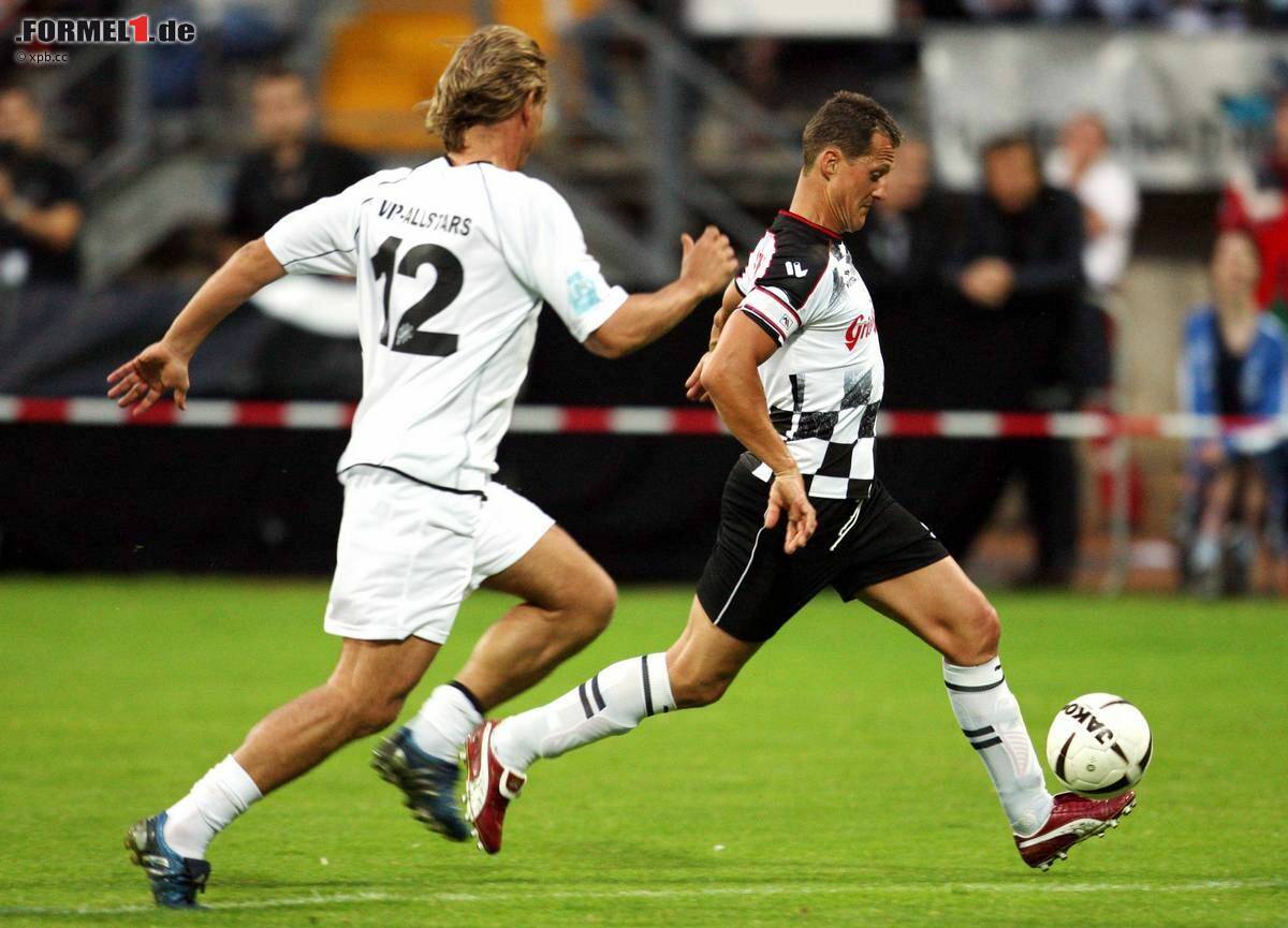 Doch nicht nur auf dem Asphaltband, sondern auch auf dem grünen Rasen fühlt sich Schumacher wohl. Neben dem Motorsport schlägt sein Herz auch für den Fußball.