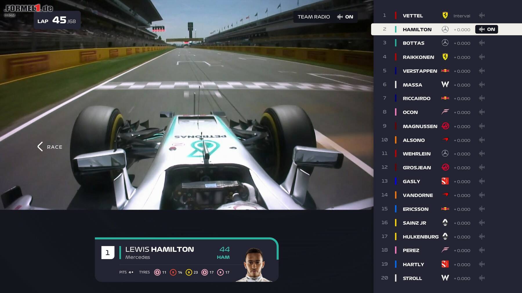 Auch der Kommentar ist in unterschiedlichen Sprachen verfügbar: Neben dem deutschen Kommentar können sich User auch für die englische, französische und spanische Tonspur entscheiden. Vor allem für die deutschen Formel-1-Fans sind das gute Nachrichten, denn nach dem Ausstieg des Bezahlsenders Sky sind die Zuschauer auf den Privatsender RTL angewiesen, der die Rennen aber mit Werbeunterbrechungen überträgt und nur das Qualifying und das Rennen live im Programm hat.