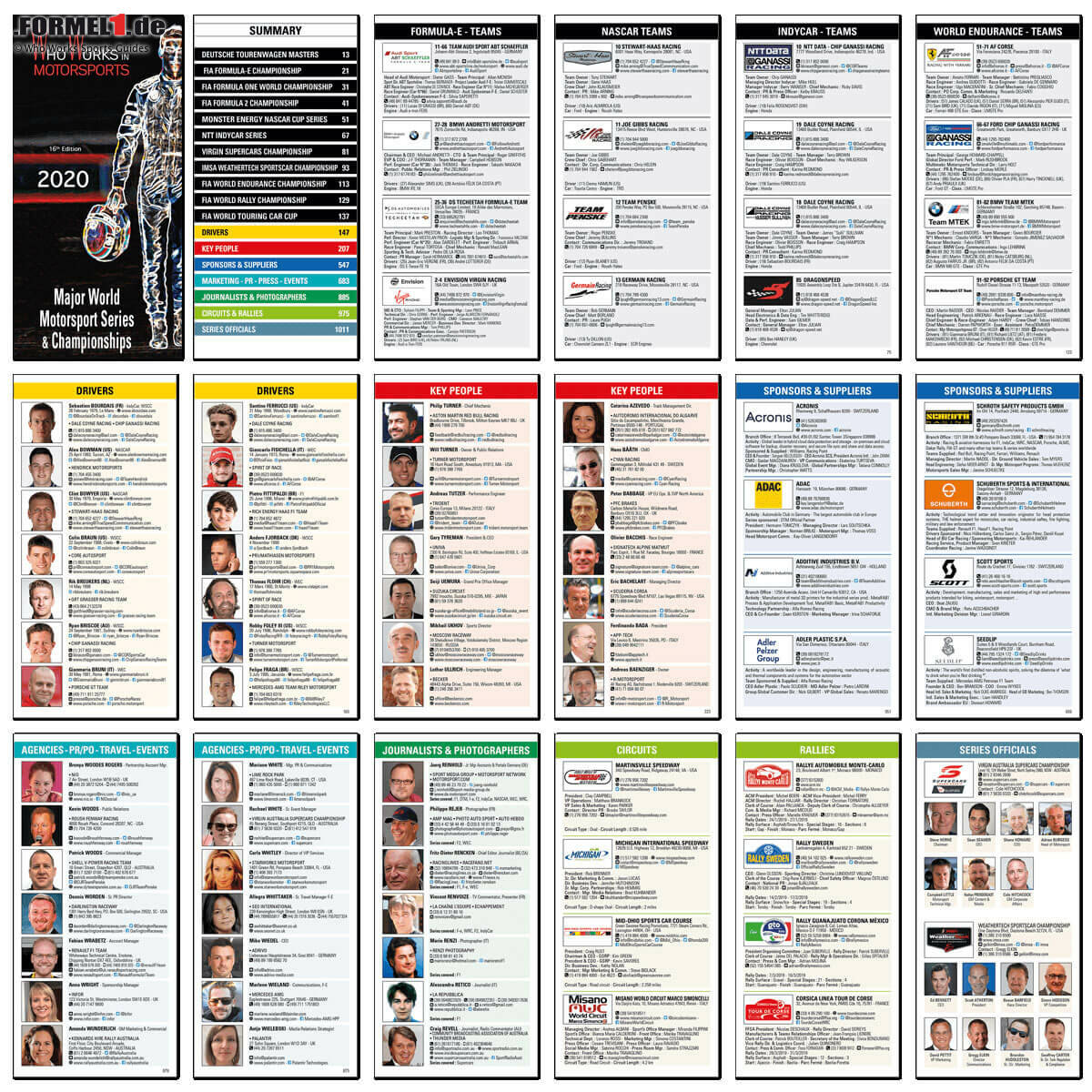 Ob DTM, Formel E, Formel 1, Formel 2, Indycar, NASCAR, Supercars, IMSA oder WRC - das einzigartige Format bringt umfassende Daten für Profis und Fans zusammen: Teams und Fahrer, Autos und Motoren, Teamchefs und Frontmänner, Ingenieure, Marketing- und Kommunikationschefs, Sponsoren, Hauptlieferanten, Journalisten und Fotografen, TV- und Radioteams, Rennstrecken, Promoter und Organisatoren, Rennfunktionäre und mehr.
