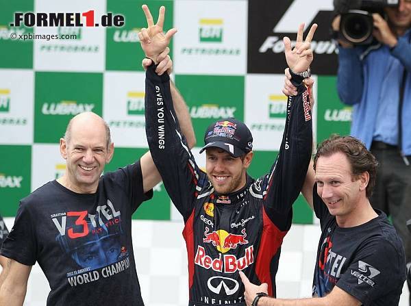 (Motorsport-Total.com) - Sechs Titel in drei Jahren hat Red Bull eingefahren. Für alle anderen fünf zusammen dürfte die Mannschaft nicht so viel Schweiß vergossen haben wie für die Fahrerkrone, die sich Sebastian Vettel am Sonntag in Sao Paulo aufsetzte. Es war ein Rennen, das alles bot: Einen Startunfall, ein beschädigtes Auto kurz vor einem Brand, Wetterkapriolen sowie einen Fahrer, der plötzlich an die Box kommt und seine Crew überrascht. "Das werde ich nie vergessen", sagt Adrian Newey im Gespräch mit 'Sky'.