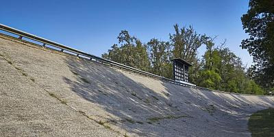 Strahlend blauer Himmel über der alten Steilkurve: Schönes Wetter in Monza Zoom Download