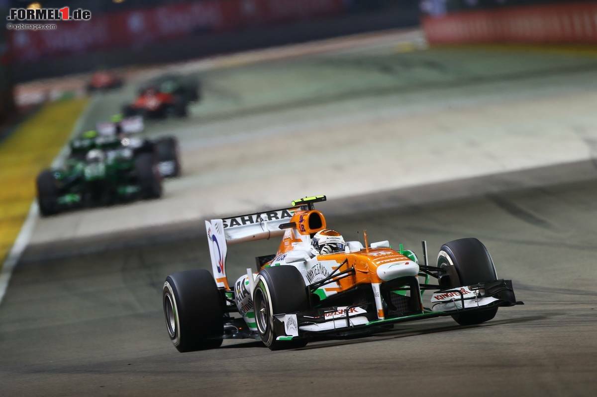 Durch den Webber-Ausfall erbte in der letzten Runde noch Adrian Sutil (Force India) einen Punkt, der davor über weite Strecken nicht groß aufgefallen war. Eigentlich wäre der Zähler für seinen Teamkollegen Paul di Resta reserviert gewesen, der seit seinem späten ersten Boxenstopp quasi außer Sequenz unterwegs war, aber der Schotte rutschte in der Schlussphase mit der Nase voran frontal in die Mauer und vergab alle Chancen.