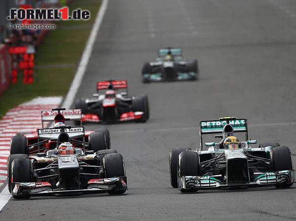 "Das Safety-Car hat uns einerseits geholfen, denn sonst hätte ich nicht gewusst, wie am Ende meine Reifen gewesen wären - wahrscheinlich ziemlich hinüber", erklärt der Deutsche nach seiner Fahrt auf Platz vier hinter Sebastian Vettel und die beiden Lotus-Piloten Kimi Räikkönen und Romain Grosjean. "Andererseits ist das Feld dadurch wieder zusammengerückt. Da waren auf einmal die McLaren wieder dran. Meine Sorge war, dass in den letzten Runden der Reifen richtig abkackt und ich dann alles verliere."