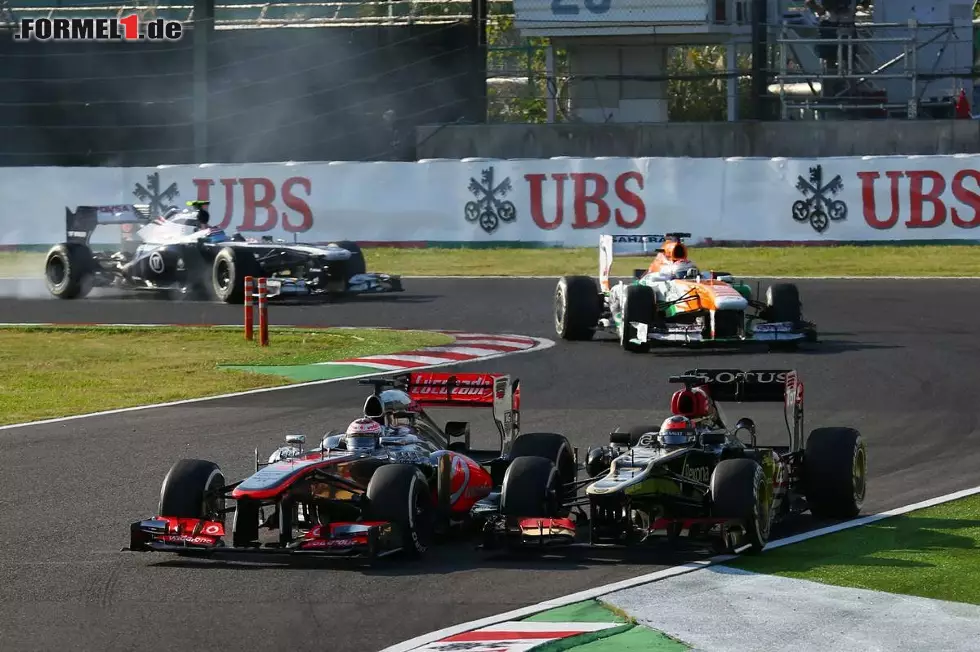 Heiße Duelle der Ex-Champions. Hier kämpft Räikkönen gegen Button.