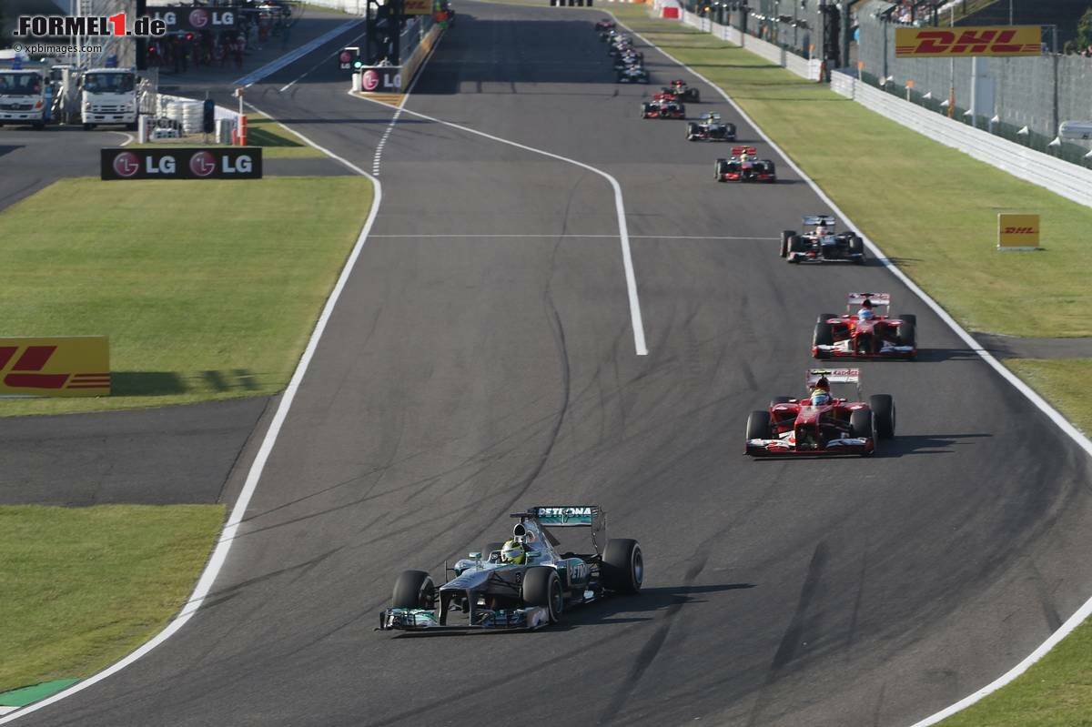 Doch wie gewonnen, so zerronnen: An vierter Stelle liegend konnte sich der Sauber-Pilot diesmal nicht auf einen überlegenen Topspeed verlassen, sodass er im Finish noch die beiden Ex-Weltmeister Alonso und Kimi Räikkönen (Lotus) durchlassen musste. Nach Platz vier in Südkorea gab's aber mit Platz sechs in Japan wieder ein Erfolgserlebnis zum 70er von Peter Sauber: "Kein schlechtes Geburtstagsgeschenk", jubelt der Deutsche.