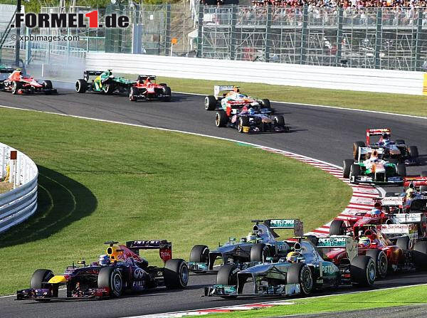 Nachdem Vettel kaum vom Fleck gekommen war, zog Hamilton links neben ihn. Der designierte Vierfach-Champion konnte nicht weiter nach rechts, weil dort Romain Grosjean an ihm vorbeigeschossen war. "Ich hatte einen sehr schlechten Start, dann war ich im Sandwich zwischen einem Lotus und Lewis", beschreibt Vettel seine missliche Lage, die er nicht mehr auszubügeln vermochte: "Ich konnte nirgendwo hin, bin schon vom Gas runter." Hamilton ist nicht der Meinung, mit der Aktion zu viel Risiko auf sich genommen zu haben.