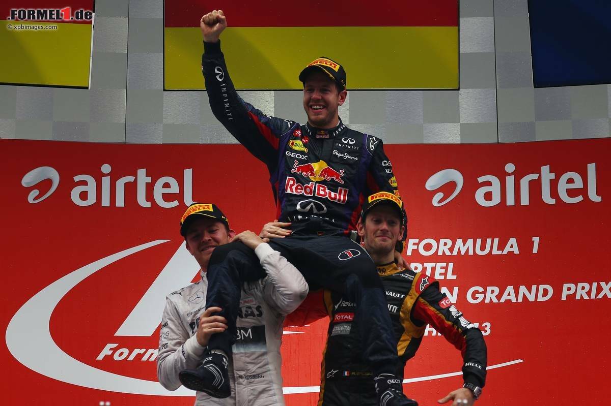 (Motorsport-Total.com) - Ein fünfter Platz wäre genug gewesen, aber Sebastian Vettel wäre nicht Sebastian Vettel, wenn er immer nur das Notwendigste tun würde. Stattdessen führte er die WM-Entscheidung 2013 mit einem souveränen Sieg beim Grand Prix von Indien herbei, 29,8 Sekunden vor Landsmann Nico Rosberg (Mercedes). Und obwohl Mark Webber an zweiter Stelle liegend ausschied, reichte es für Red Bull auch zum vorzeitigen Gewinn der Konstrukteurs-WM.