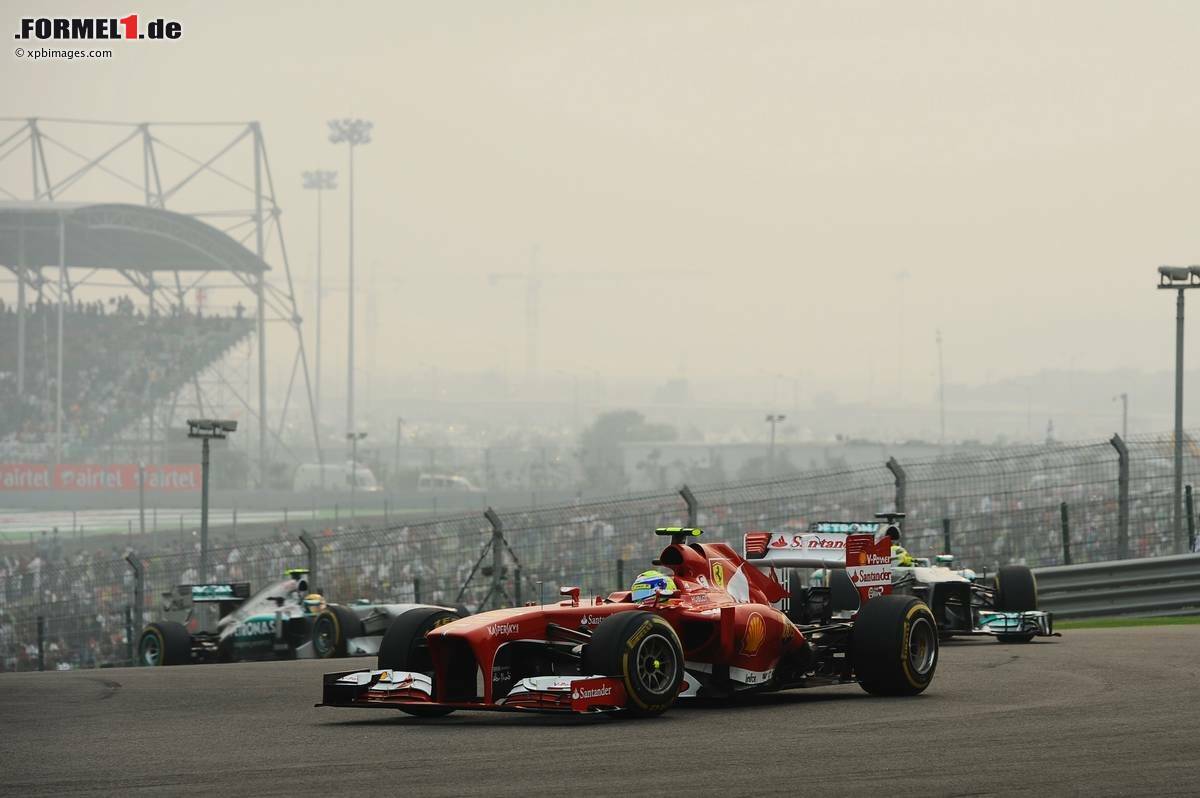 Alle anderen fuhren ihr eigenes Rennen um die Positionen hinter Red Bull. Nach Vettels erstem Boxenstopp lag kurzzeitig Massa in Führung, der beide Mercedes-Silberpfeile in der ersten Runde geschickt überholt hatte. Auch Daniel Ricciardo (Toro Rosso/am Ende 10.) und Adrian Sutil (Force India/9.) lagen durch ihre späten ersten Boxenstopps kurzzeitig auf Podiumskurs - wie die Reihenfolge durch die unterschiedlichen Strategien generell lange nicht bereinigt war.