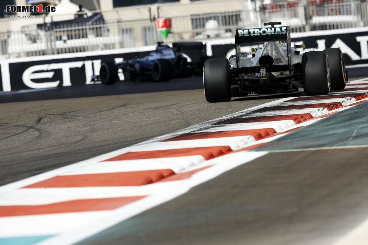 (Motorsport-Total.com) - Im Osten nichts Neues: Für Mercedes war der Tag in Abu Dhabi nicht besonders spektakulär. Mit den Plätzen drei für Lewis Hamilton (+0,355 Sekunden) und fünf für Nico Rosberg (+0,423) lagen die Silberpfeile zeitlich und platzmäßig im Rahmen, und auch sonst gab es auf der Strecke wenig Zwischenfälle, die Mercedes irgendwie aus der Bahn hätten werfen können.