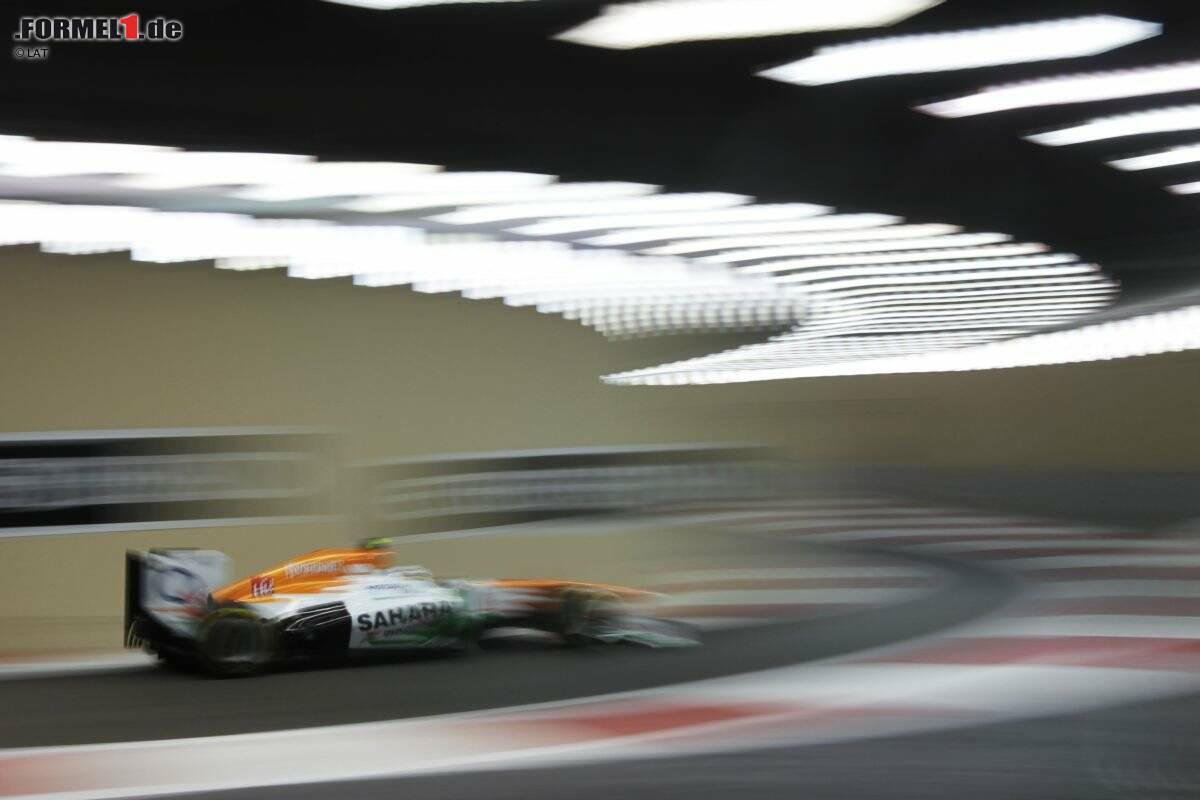 Der "Hülk" orientiert sich angesichts des guten Top-Speeds seines Saubers sogar eher nach vorne als nach hinten - auch wenn von dort nicht nur Gefahr vom Grosjean-Lotus droht. Ferrari wird am Sonntag alles daran setzen, im Schatten der gigantischen "Ferrari-World" in Abu Dhabi ein Glanzlicht zu setzen. Die Aussichten sind allerdings nicht allzu gut. Felipe Massa (8.) und Fernando Alonso (11.) konnten im Qualifying kaum Eindruck machen.