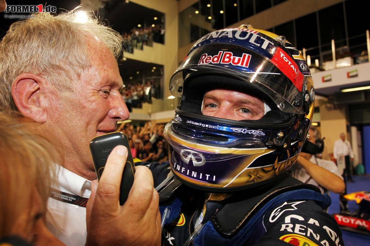 "Weltmeisterlich", lobte Red-Bull-Teamchef Christian Horner seinen Schützling nach der Zieldurchfahrt im Funk. Von Vettel kam das übliche "Ich liebe euch alle" zurück - und eine weitere Show für die Fans. "Unglaublich, vielen Dank an die Fans", sagt Vettel, der den Zuschauern ein paar Burnouts präsentierte. "Ich möchte diesen Sieg meinen Eltern widmen, die hier mit an der Strecke sind. Sie haben mir so viel gegeben, ich liebe sie sehr!" Vettel wird gemeinsam mit Freundin, Familie und Team am Abend in Abu Dhabi eine weitere Party feiern.