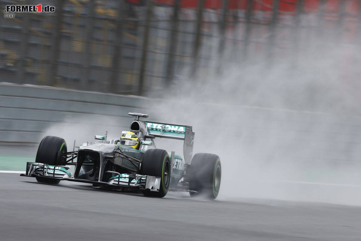 (Motorsport-Total.com) - Nico Rosberg war beim Trainingsauftakt in Brasilien am Freitag der Mann des Tages. Der Mercedes-Pilot sicherte sich auf nasser Strecke in beiden 90-minütigen Sessions in Sao Paulo die Bestzeit, einmal in 1:24.781, einmal in 1:27.306 Minuten. Die schnellere Zeit gelang Rosberg am Vormittag, als der Regen noch nicht ganz so stark war. Am Nachmittag war die Strecke gegen Ende hin im besten Zustand, als die meisten Fahrer doch noch auf Intermediates wechselten.