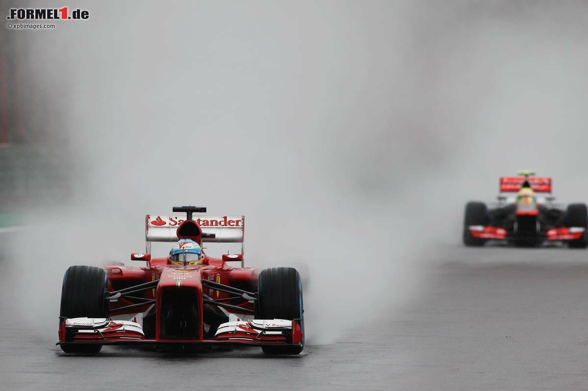Ohne großes Risiko cruiste Vettel bei regnerischen Verhältnissen durch Q1 (2.) und Q2 (2.) - und nach 45-minütiger Regenunterbrechung war er in Q3 voll da, als der Regen am stärksten war. Romain Grosjean (Lotus) wagte im Finish als Erster den Switch auf Intermediates, aber Vettel hämmerte kurz darauf wieder einmal eine Runde raus, die für alle anderen unerreichbar war. An die 1:26.479 Minuten kam nur einer näher ran als bis auf eine Sekunde, und das war Landsmann Nico Rosberg (Mercedes).