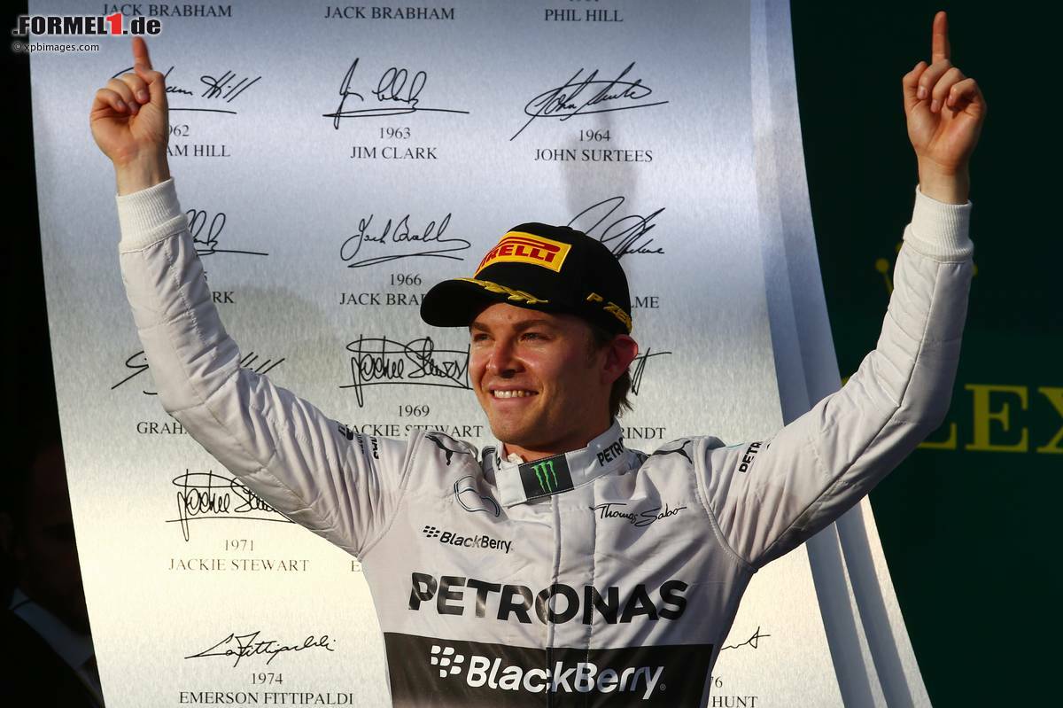 (Motorsport-Total.com) - Nico Rosberg ist seiner Favoritenrolle beim Auftakt zur Formel-1-Saison 2014 gerecht geworden und hat heute den Grand Prix von Australien in Melbourne souverän gewonnen. Der Deutsche aus dem schon im Vorfeld hoch eingeschätzten Mercedes-Werksteam sicherte sich den Sieg vor Lokalmatador Daniel Ricciardo (Red Bull) und Rookie Kevin Magnussen (McLaren). Pech hatten hingegen Lewis Hamilton (Mercedes) und Sebastian Vettel (Red Bull), die schon früh im Rennen die Segel streichen mussten.