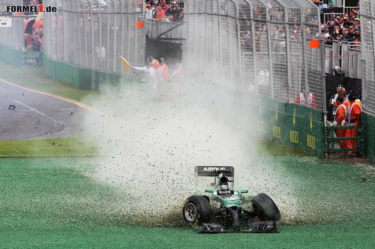 Insgesamt kamen 14 Autos in die Wertung, was nach den vielen technischen Defekten bei den Wintertests nicht unbedingt zu erwarten war. Die ersten beiden Herren waren schon nach der ersten Kurve weg: Kamui Kobayashi (Caterham), der sich am Start völlig verschätzte und viel zu spät bremste, und Felipe Massa (Williams). Massa wurde ein unschuldiges Opfer des Kamikaze-Japaners, dem für seine übermotivierte Aktion nachträglich eine Strafe droht.