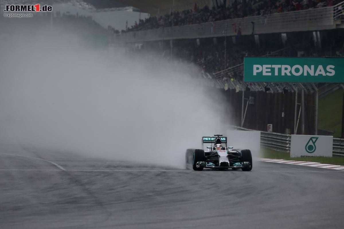 (Motorsport-Total.com) - Mercedes zeigte im Qualifying der Formel 1 zum Großen Preis von Malaysia in Sepang, dass der F1 W05 nicht nur im Trockenen, sondern auch bei Regen schnell ist. Bei durchweg nassen Bedingungen fuhr Lewis Hamilton im um 50 Minuten nach hinten verschobenen Qualifying mit einer Zeit von 1:59.431 Minuten auf Startplatz eins. Wie schon beim Saisonauftakt in Melbourne wird der Brite das Rennen damit von der Pole-Position starten.