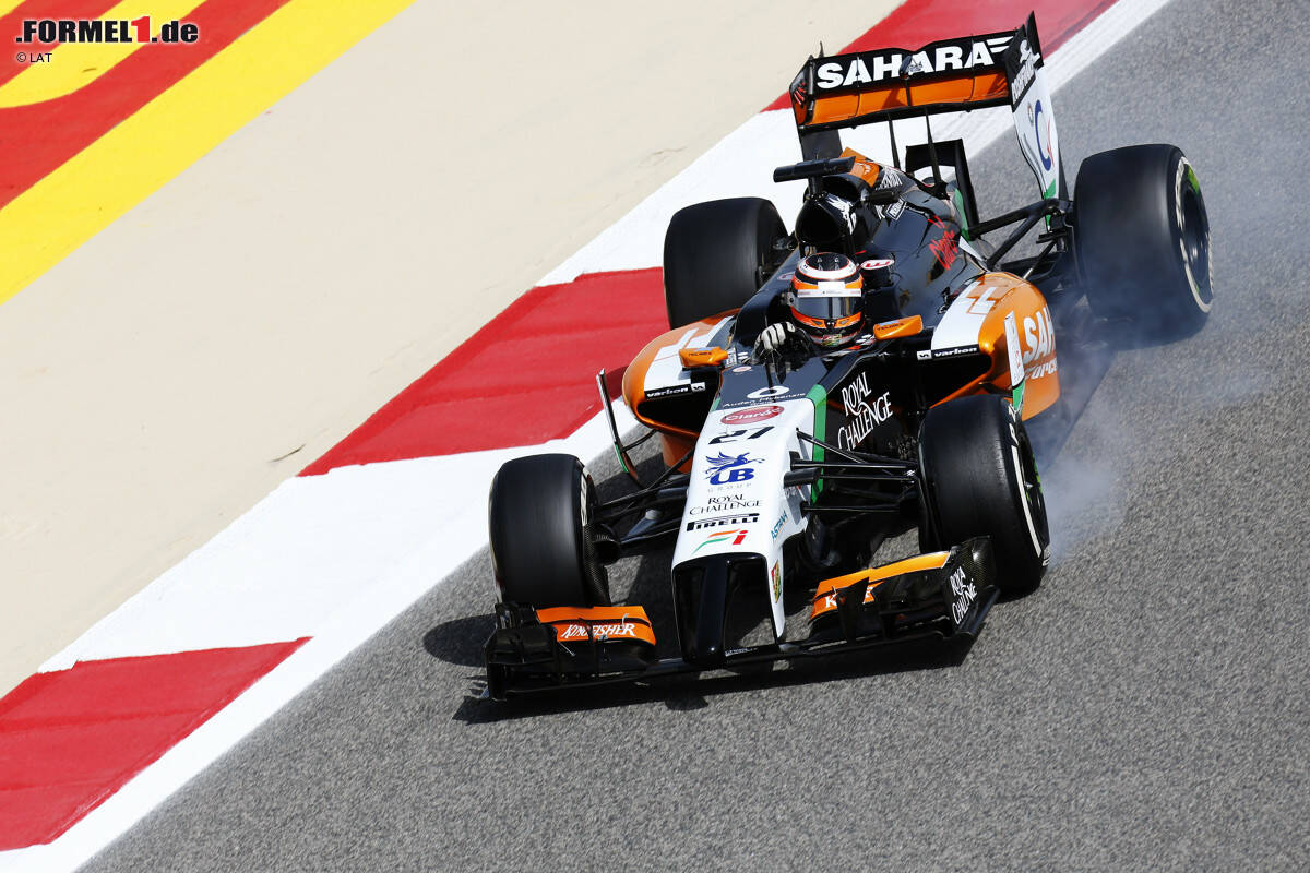 Bahrain-Spezialist Felipe Massa (5./+1,117) konnte bei seinem kurzen Versuch auf weichen Pneus ein gutes Tempo zeigen, sein Teamkollege Valtteri Bottas (11./+1,595) wurde bei seiner ersten Runde auf dem guten Gummi aufgehalten. Von Williams ist sicherlich noch mehr zu erwarten. Ebenso von Force India. Nico Hülkenberg (13./+1,673), der am Mittag im Vorderfeld gefahren war, zeigte am Abend ein herausragendes Tempo über die Distanz. Gemessen an den Longruns muss man ihn als ersten Mercedes-Verfolger nennen.