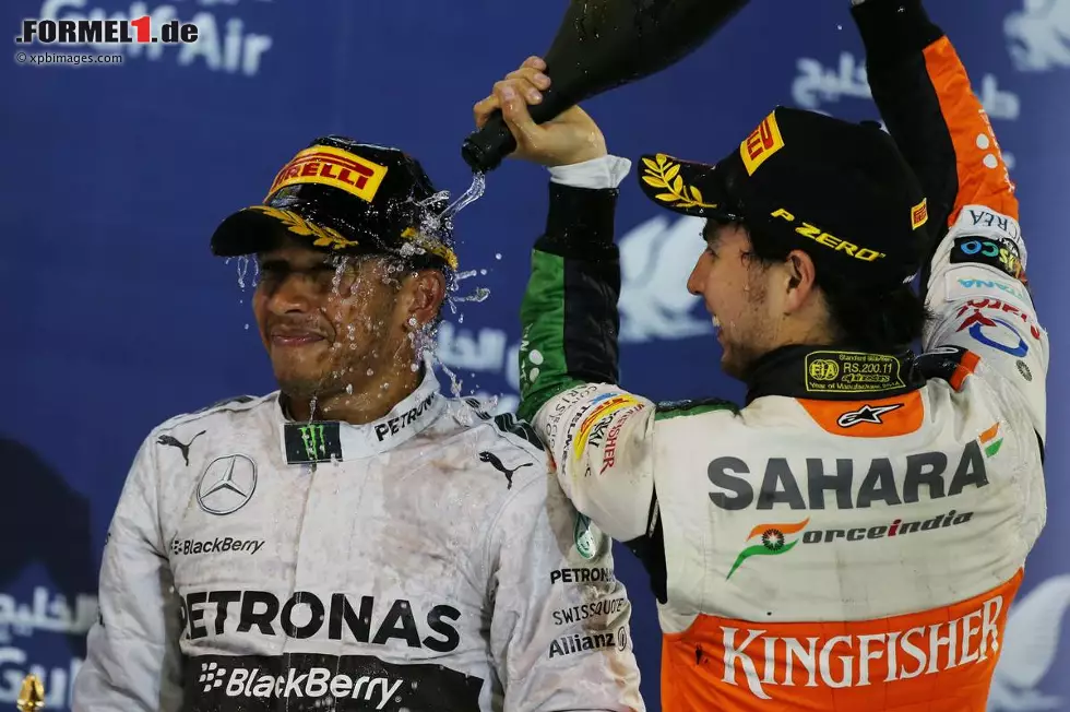 Von Sergio Perez gab es auf dem Podium eine erfrischende Champagner-Dusche.