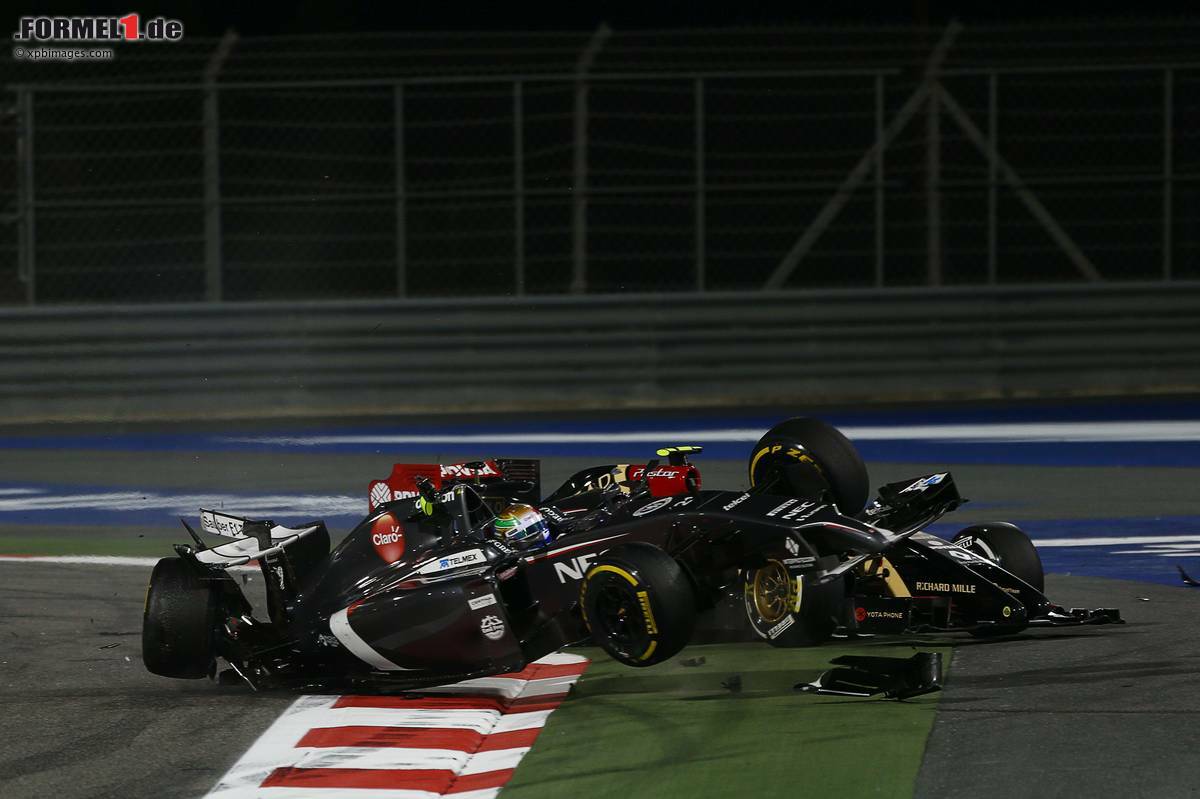 Was in Runde 42 in den Venezolaner gefahren war, ist bislang nicht zu erklären. Maldonado kam nach einem Stopp aus der Box und rammte in der ersten Ecke mit großer Wucht seitlich in den Sauber von Esteban Gutierrez. Der Mexikaner überschlug sich mit seinem Fahrzeug, fragte anschließend benommen im Funk: "Was war das denn?". Maldonado wurde sofort zu einer Stop-and-Go-Strafe gebeten, wird aber wohl weitere Konsequenzen zu befürchten haben. Sportlich war für Lotus wieder rein gar nichts zu holen.