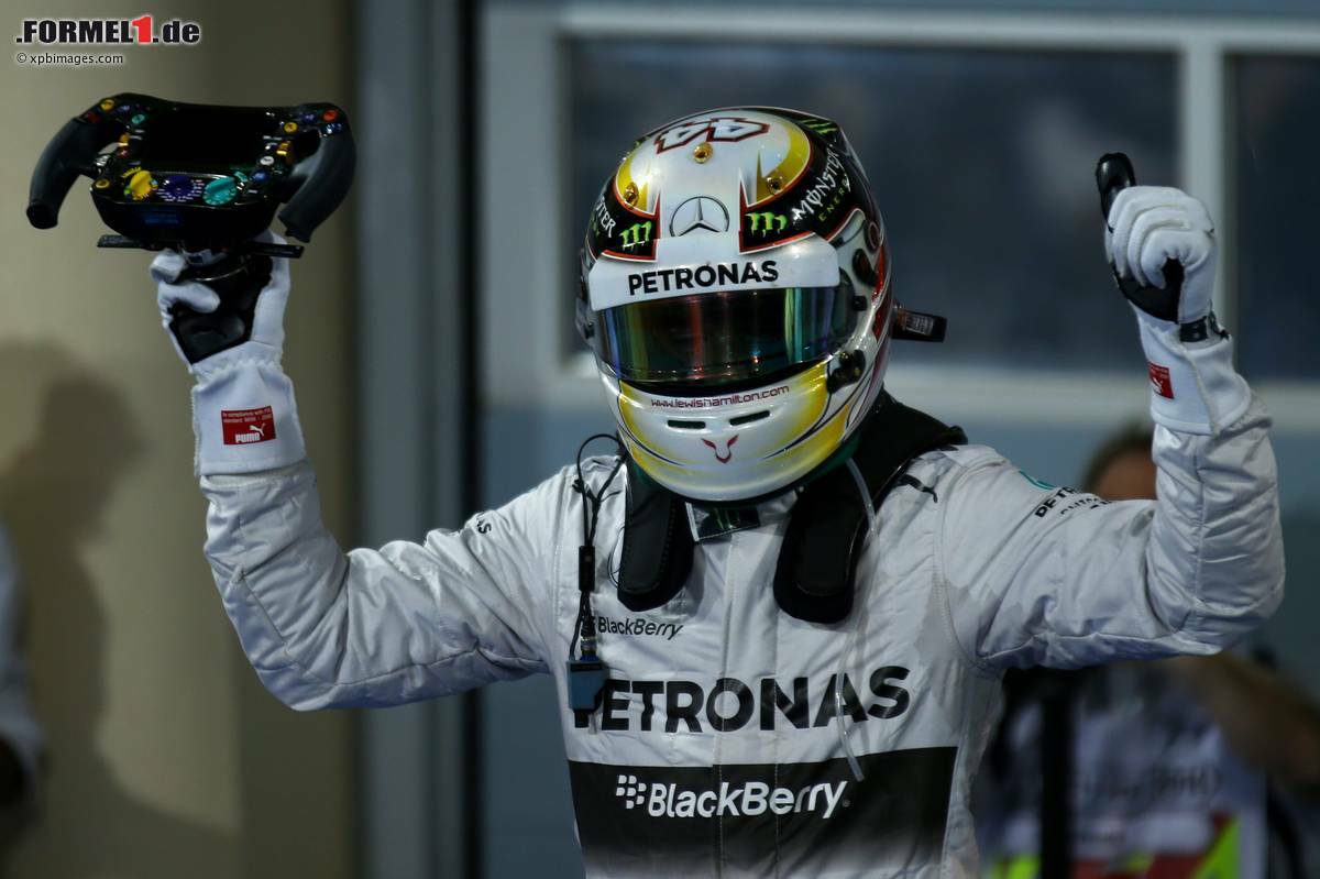 Lewis Hamilton hatte am beinharten Duell mit Mercedes-Teamkollege Nico Rosberg seine helle Freude und jubelt über seinen ersten Bahrain-Sieg