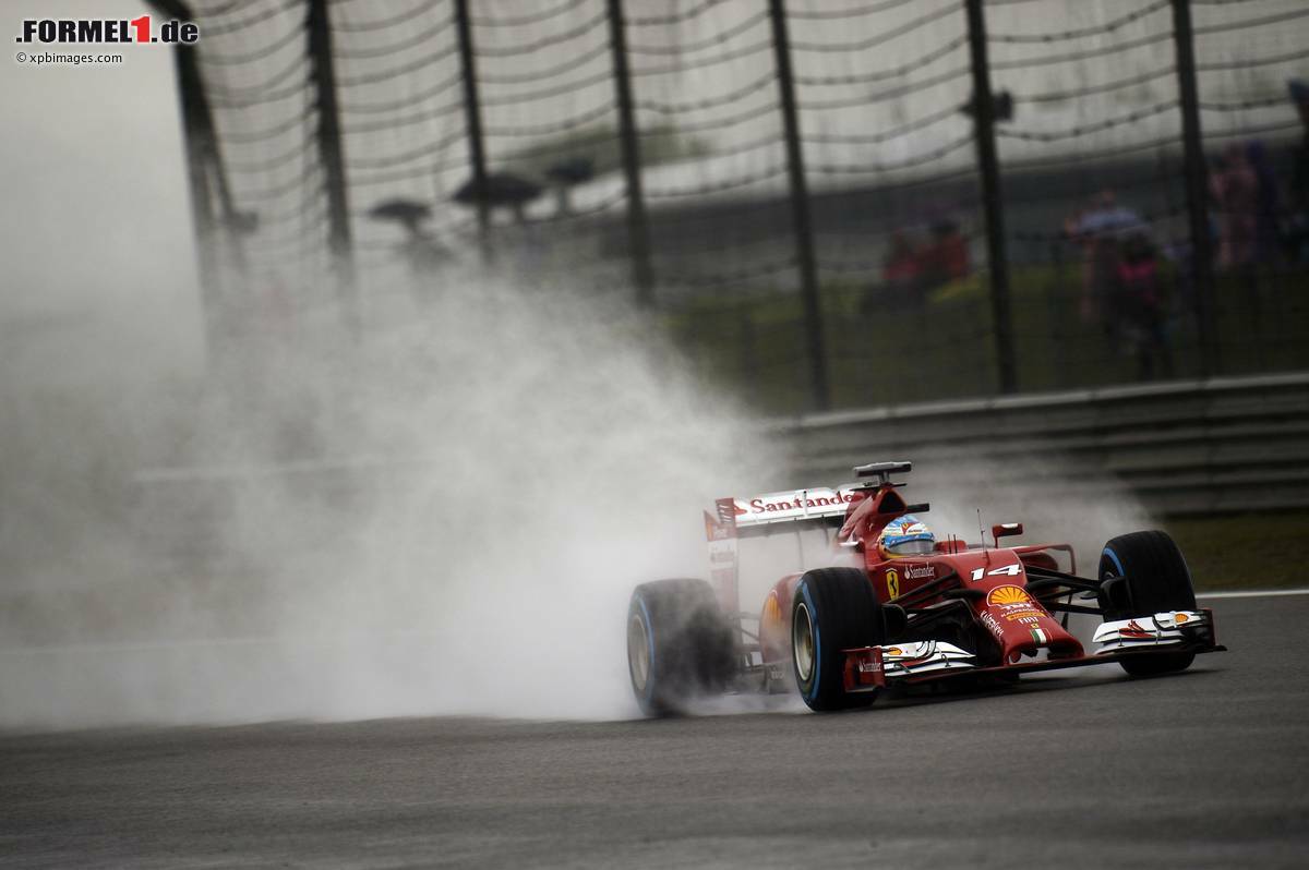 An seinem F14 T streikte außerdem die Technik: "Am Freitag hatten wir Schwierigkeiten, heute kleinere Probleme mit dem Runterschalten." Auf die Frage, ob im Trockenen mit Besserung zu rechnen ist, reagiert Räikkönen mit seinem gewohnt entwaffnenden Phlegma: "Die Probleme hatten wir ja auch im Trockenen." Als die Sonne schien, war Alonso deutlich glücklicher. "Wir haben vielversprechende Zeichen erkannt, was die Leistung im Trockenen angeht", bestätigt er und schielt sogar auf das Podium.