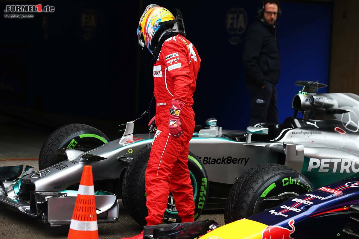 An seinem F14 T streikte außerdem die Technik: "Am Freitag hatten wir Schwierigkeiten, heute kleinere Probleme mit dem Runterschalten." Auf die Frage, ob im Trockenen mit Besserung zu rechnen ist, reagiert Räikkönen mit seinem gewohnt entwaffnenden Phlegma: "Die Probleme hatten wir ja auch im Trockenen." Als die Sonne schien, war Alonso deutlich glücklicher. "Wir haben vielversprechende Zeichen erkannt, was die Leistung im Trockenen angeht", bestätigt er und schielt sogar auf das Podium.