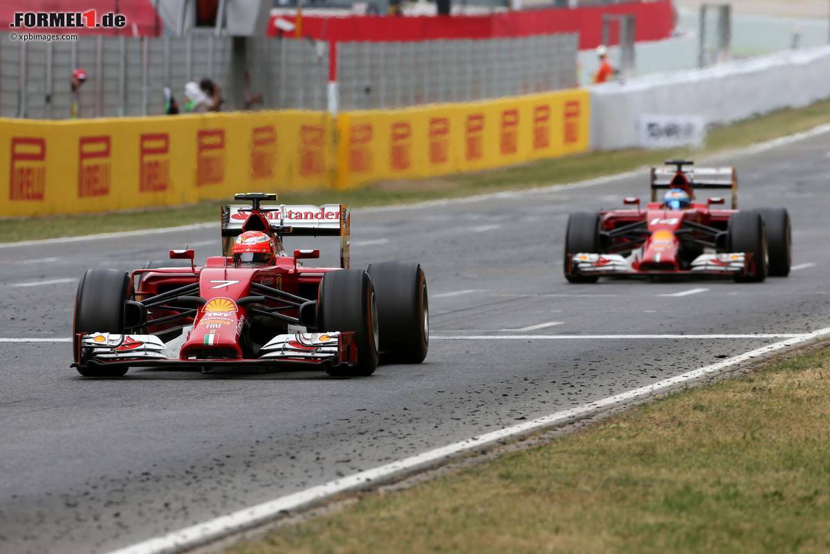 (Motorsport-Total.com) - Über weite Strecken lag Kimi Räikkönen beim Grand Prix von Spanien vor seinem Teamkollegen Fernando Alonso, doch dann stellte Ferrari die Strategien um: Räikkönen blieb auf zwei, Alonso wechselte auf drei Stopps - und hatte nach einer Aufholjagd im Finish die frischeren Reifen, als es zum direkten Duell der beiden Ex-Weltmeister kam.