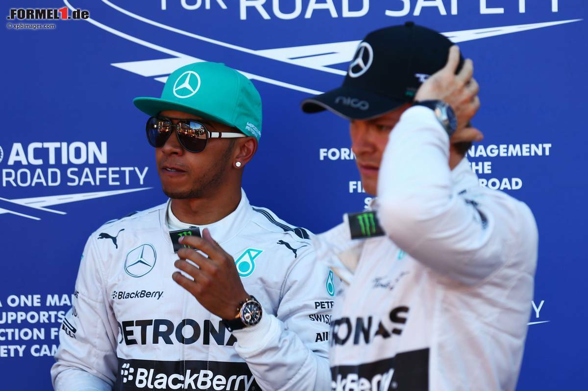 Wenige Sekunden später beim offiziellen Foto der Top 3 des Qualifyings wiederholte sich das Verhalten der Mercedes-Piloten. Hamilton stand schon bereit. Weil aber der Drittplatzierte Daniel Ricciardo (Red Bull) noch nicht da war, entschied sich Rosberg, statt schon einmal neben seinem Teamkollegen Aufstellung zu nehmen, erst mal seine Sponsorenkappe abzuholen. Auch beim Top3-Foto selbst würdigten sich die beiden Mercedes-Piloten keines Blickes - von einem Handschlag ganz zu schweigen.