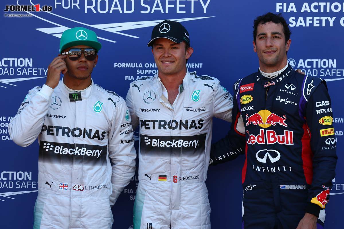 Das scheint Hamilton ein bisschen anders zu sehen, denn der um 0,059 Sekunden geschlagene Brite würdigte seinen deutschen Teamkollegen während Pole-Foto und Pressekonferenz keines Blickes - überzeugt davon, dass er noch Bestzeit gefahren wäre. Es sei "ironisch", dass Rosberg mit einem Fehler die Pole fixiert hat, sagt der WM-Leader, aber Rosberg freut sich über den für ihn wichtigen ersten Startplatz und meint in Richtung seines Teamkollegen: "Tut mir leid für Lewis. Ich dachte eigentlich, meine Chance sei damit dahin."