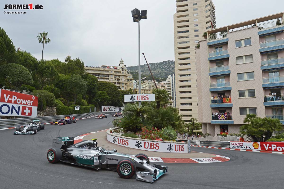 (Motorsport-Total.com) - Nico Rosberg hat im zweiten Jahr in Folge den Grand Prix von Monaco gewonnen. Der Deutsche setzte sich am Formel-1-Sonntag im Fürstentum gegen seinen Mercedes-Teamkollegen Lewis Hamilton und Red-Bull-Pilot Daniel Ricciardo durch. Rosberg hatte zwar am Ende des Rennens über 78 Runden einen großen Vorsprung von über neun Sekunden, aber über weite Strecken war ihm Hamilton wie ein Schatten gefolgt.