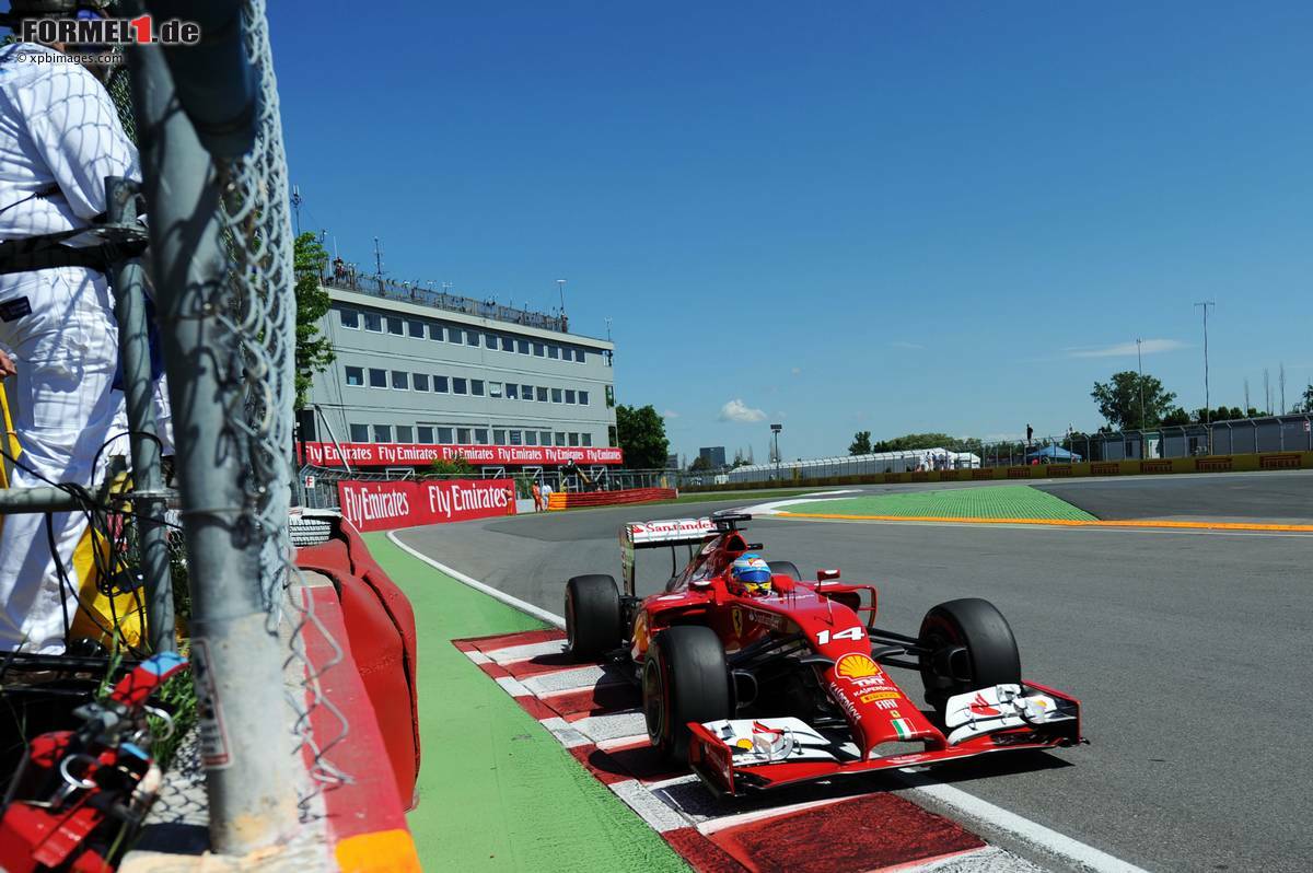 (Motorsport-Total.com) - Dass Ferrari auf dem Hochgeschwindigkeits-Kurs von Montreal im Qualifying keine italienischen Pinien entwurzeln würde, war den meisten Experten schon im Vorfeld des Kanada-Grand-Prix klar. Dass die Scuderia am Samstag neben Mercedes und Red Bull den beiden Williams-Piloten den Vortritt lassen musste, bedeutete aber einen Rückschlag für Fernando Alonso (1:15.814 Minuten; +0,940 Sekunden) und Kimi Räikkönen (1:16.214 Minuten; +1,340 Sekunden). Der Spanier geht von Rang sieben ins Rennen, sein Teamkollege von der zehnten Position.