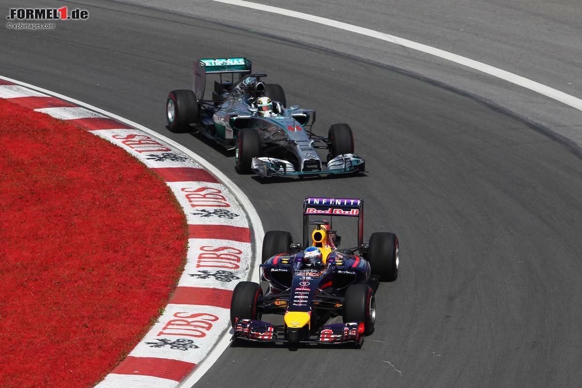 (Motorsport-Total.com) - Die Serie von Mercedes ist unterbrochen, die Formel 1 hat einen neuen Sieger: Daniel Ricciardo (Red Bull) gewann heute in Montreal den Grand Prix von Kanada vor Nico Rosberg (Mercedes) und Sebastian Vettel (Red Bull). Im siebten Rennen stand damit zum ersten Mal kein Silberpfeil-Pilot ganz oben auf dem Treppchen. Lewis Hamilton (Mercedes) musste sogar seinen zweiten Ausfall der Saison 2014 verzeichnen und ist damit der große Verlierer des Tages.