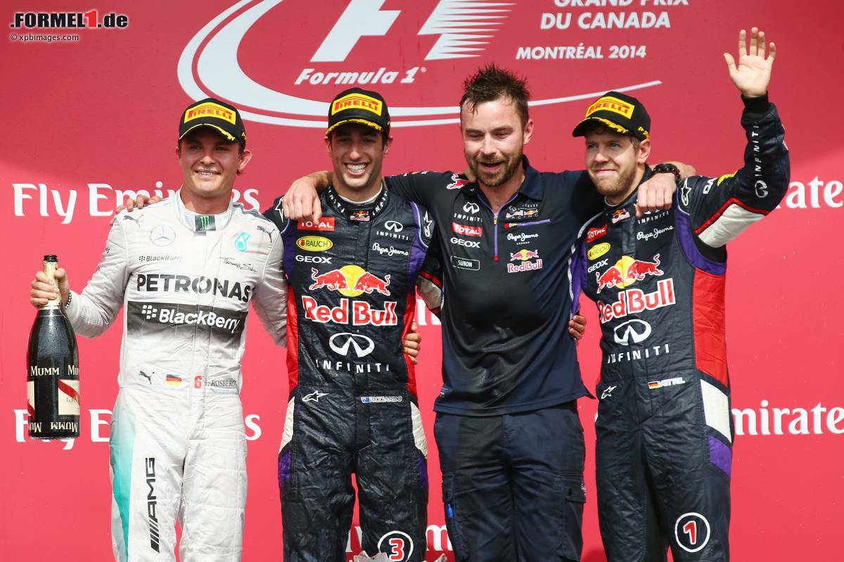 (Motorsport-Total.com) - Kanada ist offenbar ein gutes Pflaster für Premierensiege. Einst war es Lewis Hamilton, der auf dem Circuit Gilles Villeneuve seinen ersten Formel-1-Triumph einfuhr, am Sonntag glückte dieses Kunststück Daniel Ricciardo. Der Australier, bekannt für sein Dauergrinsen, zeigte auf dem Podium alle Zähne und überstrahlte sogar das sprichwörtliche Honigkuchenpferd. "Ich bin immer noch geschockt. Das ist einfach lächerlich! Und da sehe ich auch noch australische Flaggen", zeigt er sich überwältigt.