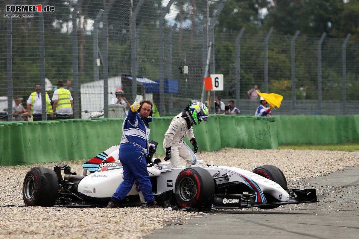 (Motorsport-Total.com) - Die Ausgangslage vor dem Rennen sah extrem vielversprechend aus. Beide Williams starteten von den Plätzen zwei und drei in den Grand Prix von Deutschland. Doch bereits in der ersten Kurve war das Rennen für Felipe Massa vorbei. Der Brasilianer kam vom Start gut weg und ging vor der ersten Kurve fast noch an Teamkollege Bottas vorbei. Doch um eine Kollision mit dem Finnen zu vermeiden, gab Massa nach und ging als Dritter in die Kurve.
