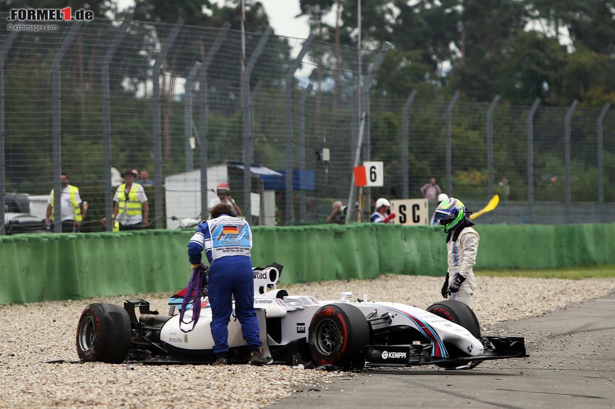 (Motorsport-Total.com) - Die Ausgangslage vor dem Rennen sah extrem vielversprechend aus. Beide Williams starteten von den Plätzen zwei und drei in den Grand Prix von Deutschland. Doch bereits in der ersten Kurve war das Rennen für Felipe Massa vorbei. Der Brasilianer kam vom Start gut weg und ging vor der ersten Kurve fast noch an Teamkollege Bottas vorbei. Doch um eine Kollision mit dem Finnen zu vermeiden, gab Massa nach und ging als Dritter in die Kurve.