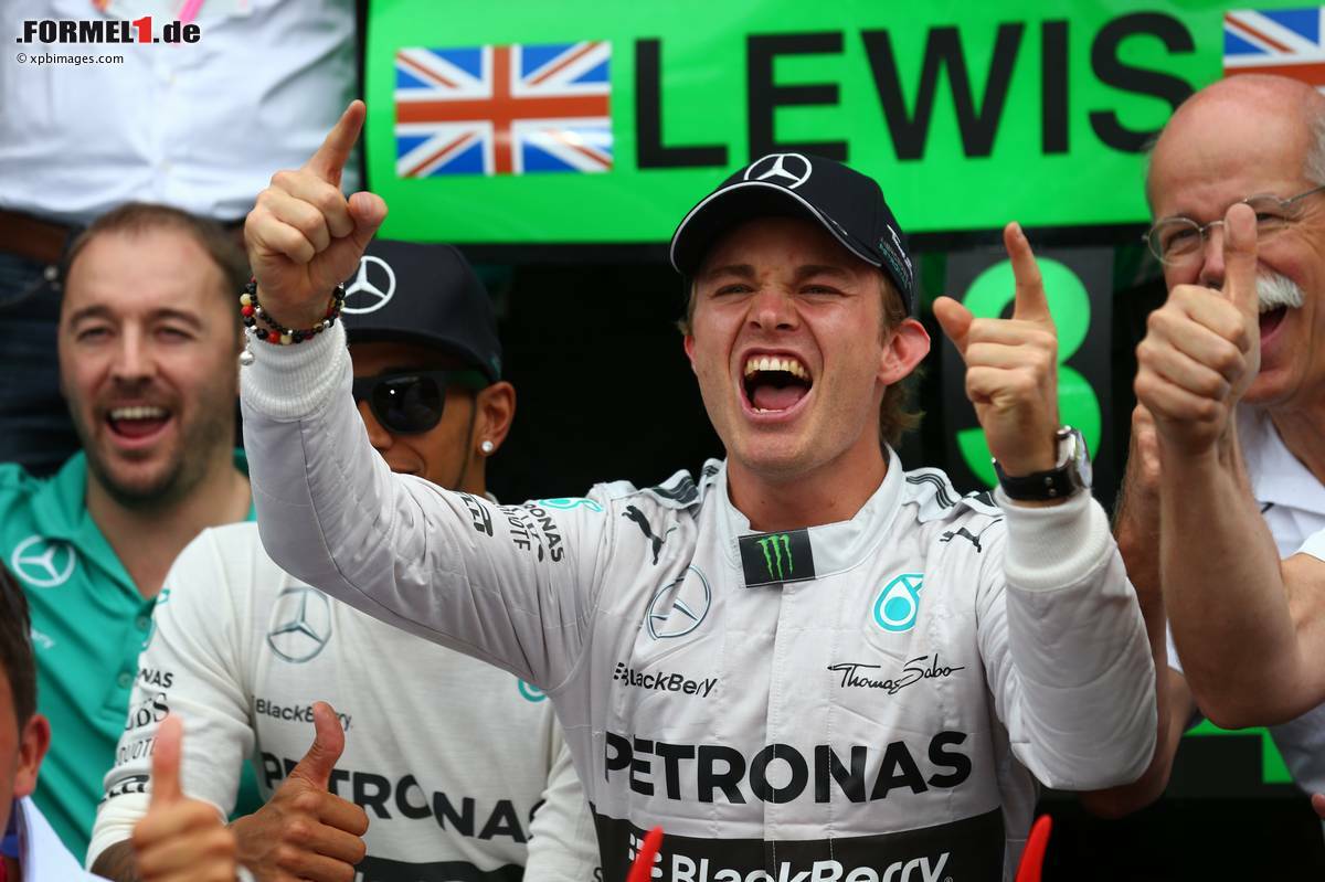 Doch kurz vor dem Ende des Rennens gab es einen Zwischenfall, der nichts mit Rosberg zu tun hatte, der den Sieg fast Teamkollege Lewis Hamilton in die Hände gespielt hätte. Ausgerechnet Landsmann Adrian Sutil sorgte mit seinem Dreher eingangs der Start- und Zielgerade dafür, dass der Heimsieg Rosbergs am seidenen Faden hing. "Am Ende stand noch einer quer, und ich war mir sicher, dass ein Safety-Car kommt. Ich wusste: Das ist nichts Gutes", schildert Rosberg.