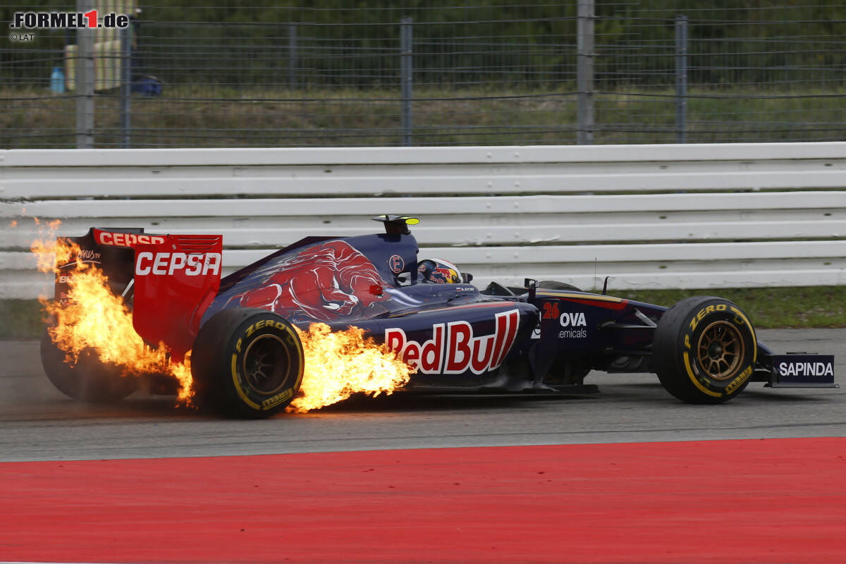Noch schlechter erging es Teamkollege Kwjat. Der Russe fuhr ein gutes Rennen, fiel aber nach einer Berührung mit Sergio Perez und dem daraufhin nötigen Boxenstopp an das Ende des Feldes zurück. Doch in der 46. Runde kam es dann noch dicker, als er plötzlich langsamer wurde und aus dem Heck Flammen schossen. "Ich sah zuerst nur Rauch, dann aber auch Flammen im Rückspiegel, und schließlich wurde es im Cockpit richtig heiß. Deswegen stellte ich das Auto schnell ab und sprang heraus", so der Russe. Sein STR09 brannte lichterloh.