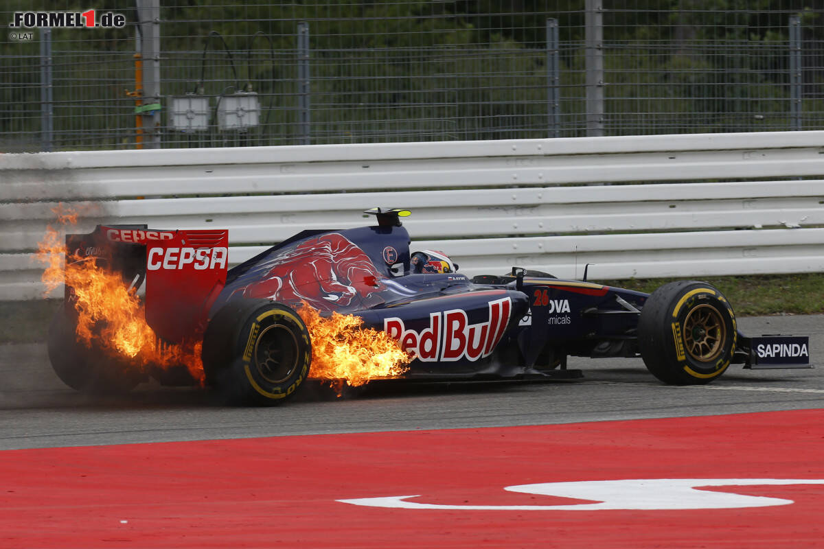 Noch schlechter erging es Teamkollege Kwjat. Der Russe fuhr ein gutes Rennen, fiel aber nach einer Berührung mit Sergio Perez und dem daraufhin nötigen Boxenstopp an das Ende des Feldes zurück. Doch in der 46. Runde kam es dann noch dicker, als er plötzlich langsamer wurde und aus dem Heck Flammen schossen. "Ich sah zuerst nur Rauch, dann aber auch Flammen im Rückspiegel, und schließlich wurde es im Cockpit richtig heiß. Deswegen stellte ich das Auto schnell ab und sprang heraus", so der Russe. Sein STR09 brannte lichterloh.