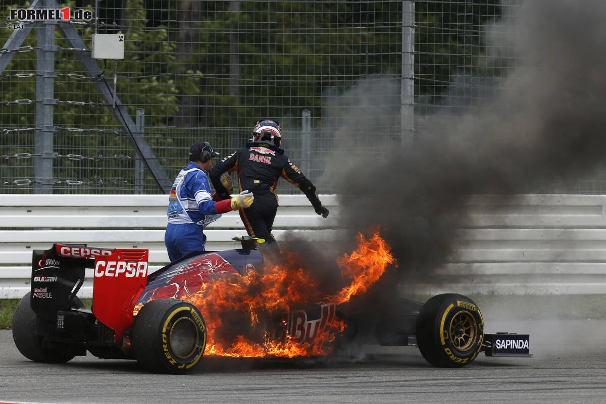 Noch schlechter erging es Teamkollege Kwjat. Der Russe fuhr ein gutes Rennen, fiel aber nach einer Berührung mit Sergio Perez und dem daraufhin nötigen Boxenstopp an das Ende des Feldes zurück. Doch in der 46. Runde kam es dann noch dicker, als er plötzlich langsamer wurde und aus dem Heck Flammen schossen. "Ich sah zuerst nur Rauch, dann aber auch Flammen im Rückspiegel, und schließlich wurde es im Cockpit richtig heiß. Deswegen stellte ich das Auto schnell ab und sprang heraus", so der Russe. Sein STR09 brannte lichterloh.