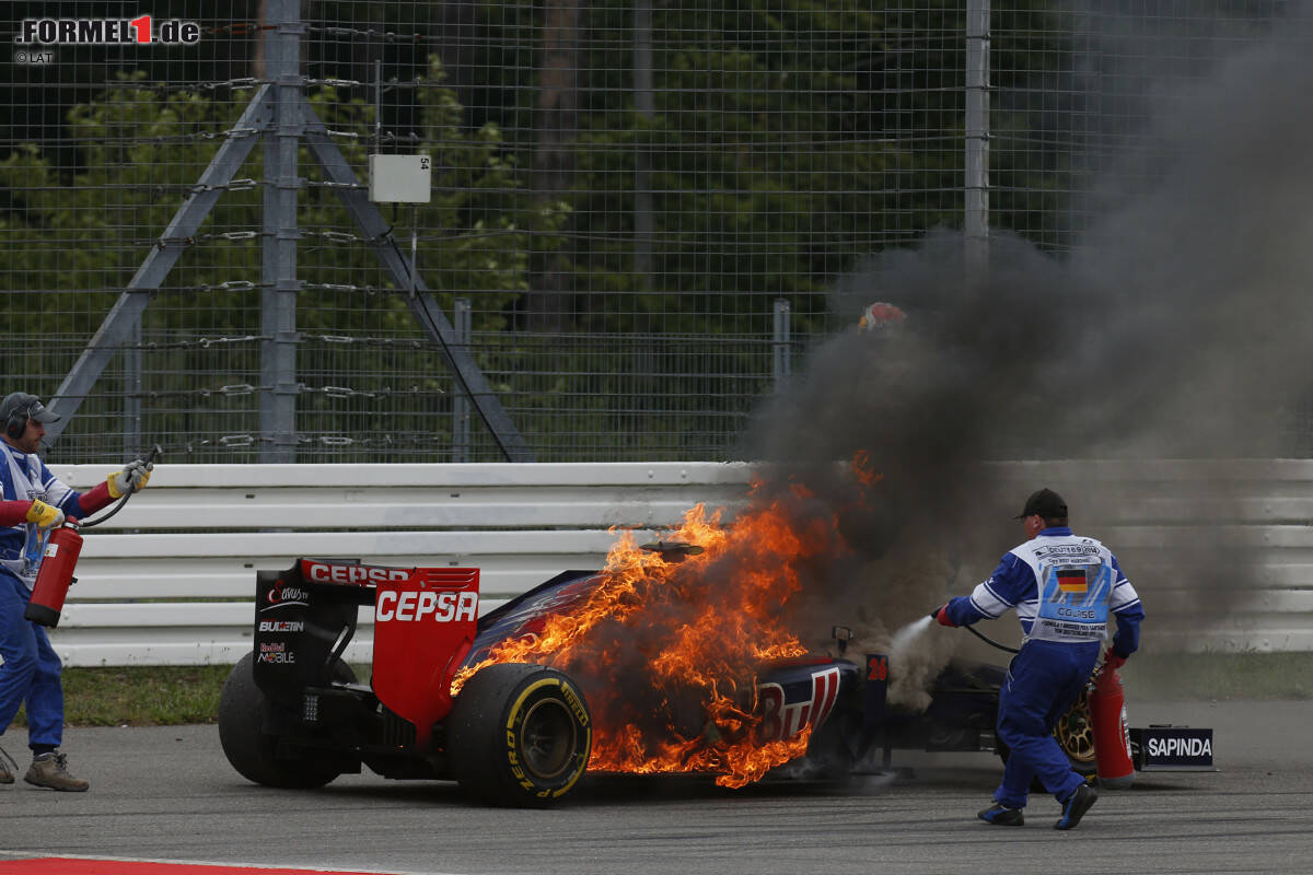 Noch schlechter erging es Teamkollege Kwjat. Der Russe fuhr ein gutes Rennen, fiel aber nach einer Berührung mit Sergio Perez und dem daraufhin nötigen Boxenstopp an das Ende des Feldes zurück. Doch in der 46. Runde kam es dann noch dicker, als er plötzlich langsamer wurde und aus dem Heck Flammen schossen. "Ich sah zuerst nur Rauch, dann aber auch Flammen im Rückspiegel, und schließlich wurde es im Cockpit richtig heiß. Deswegen stellte ich das Auto schnell ab und sprang heraus", so der Russe. Sein STR09 brannte lichterloh.